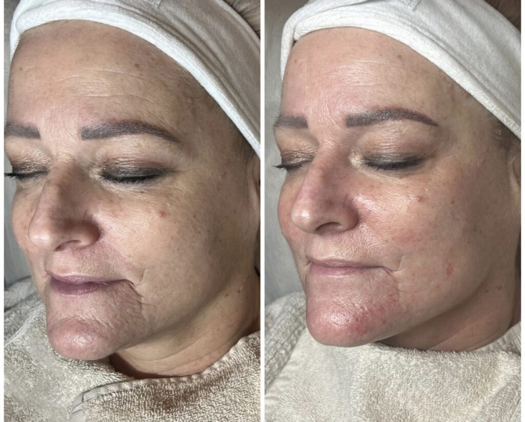 Under behandlingen benyttes en dermapen med ultrafine nåle, som laver mikroskopiske kanaler i huden. Disse små “sår” får huden til at reparere sig selv og øger produktionen af kollagen. Behandlingen afsluttes med beroligende serum og maske, der hjælper helingen og maksimerer effekten.